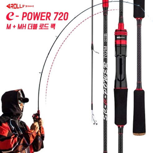 [ROLLFISH] E-파워 702M 카본 루어낚시대는 1.8m와 2.1m의 모델로 제공되며, 길이에 따른 모델 번호로 구분됩니다. 602는 1.8m, 702는 2.1m 모델을 의미하지만 성능에는 영향을 미치지 않습니다. 이 낚싯대는 2개의 봉으로 구성된 더블로드 세트로, 다양한 낚시 상황에 대비할 수 있습니다.