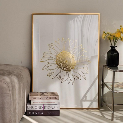 프리미엄 돈 들어오는 금 해바라기 인테리어 대형 액자 크로마사, 02. 골드 블룸, 01. 무광 골드 프레임, 1개